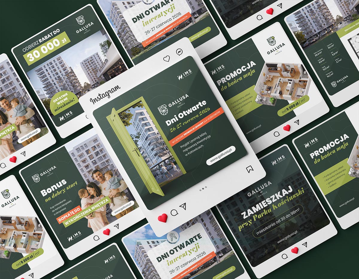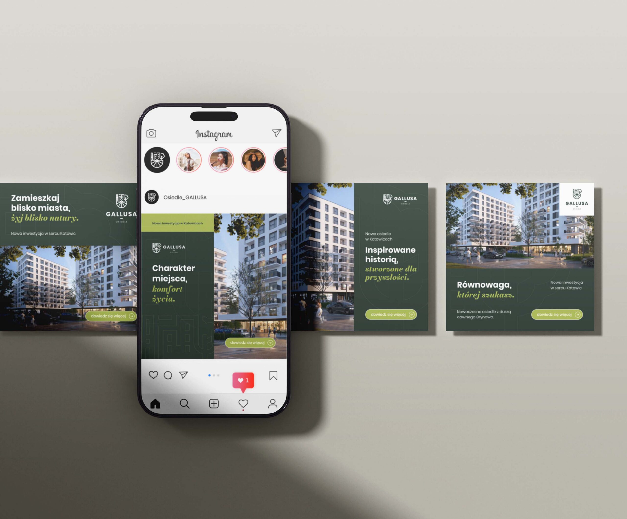 Głównym wyzwaniem projektu było stworzenie spójnej i autentycznej identyfikacji wizualnej osiedla GALLUSA, która oddaje charakter miejsca oraz jego unikalny kontekst lokalizacyjny. Inwestycja powstaje w Katowicach, w dzielnicy Brynów, w sąsiedztwie historycznej kopalni Wujek – przestrzeni o silnym znaczeniu symbolicznym dla regionu.