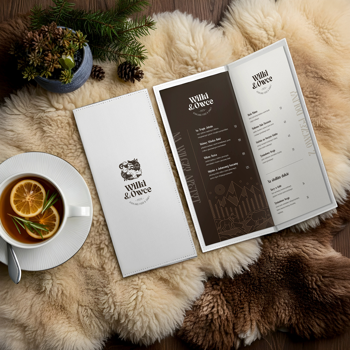 Identyfikacja wizualna restauracji Wilki & Owce to projekt, w którym połączyliśmy nowoczesną estetykę z góralskimi inspiracjami. Naszym celem było stworzenie spójnego systemu, który podkreśla wyjątkowy charakter tego miejsca — eleganckiego, naturalnego i autentycznego.