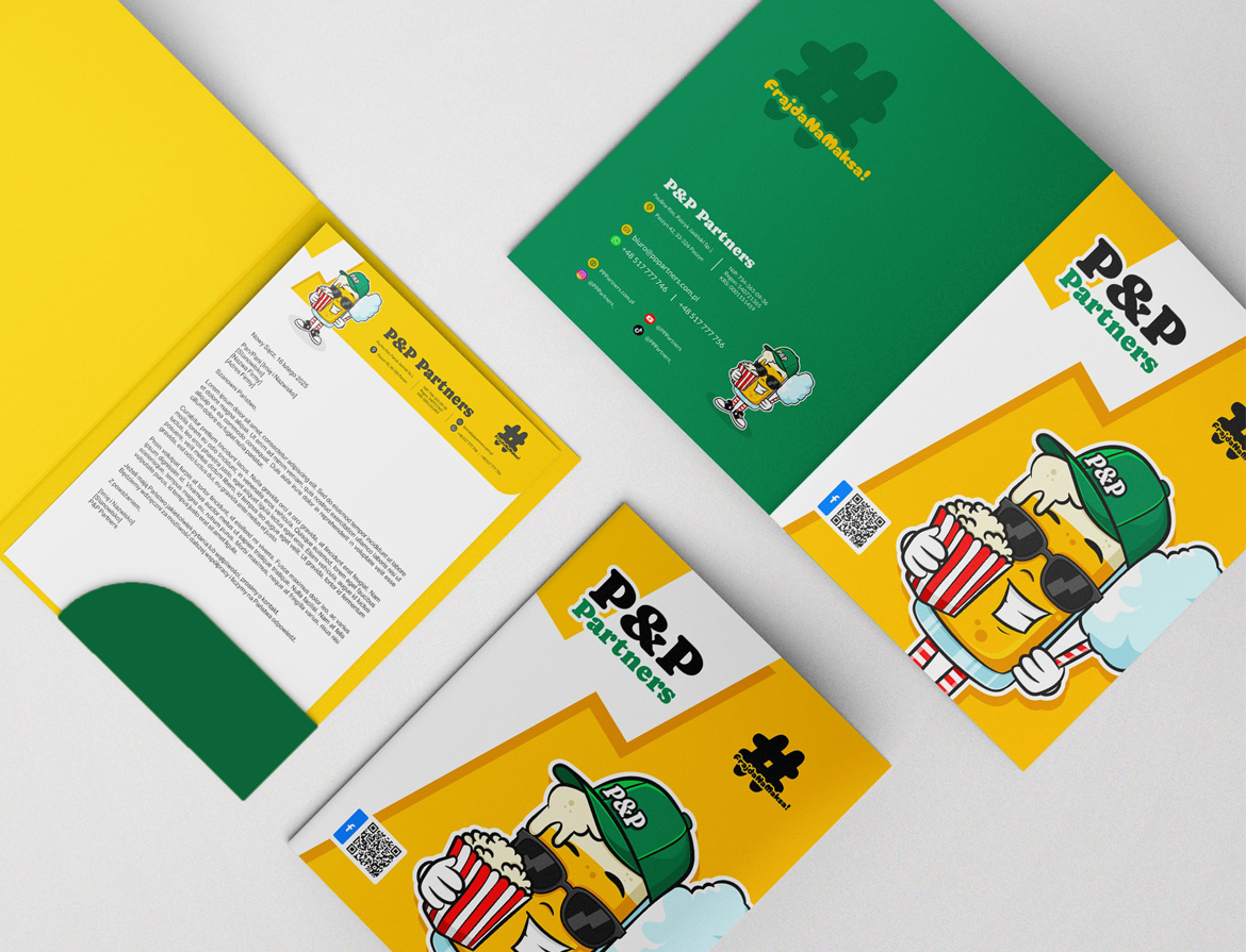 Zrealizowaliśmy kompleksowy projekt brandingowy i identyfikacji wizualnej dla firmy P&P Partners, specjalizującej się w branży eventowej. W ramach projektu zaprojektowaliśmy nowoczesne logo, które stanowi podstawę wizerunku marki, oraz pełną identyfikację wizualną wraz z księgą znaku i drukowanymi materiałami firmowymi.